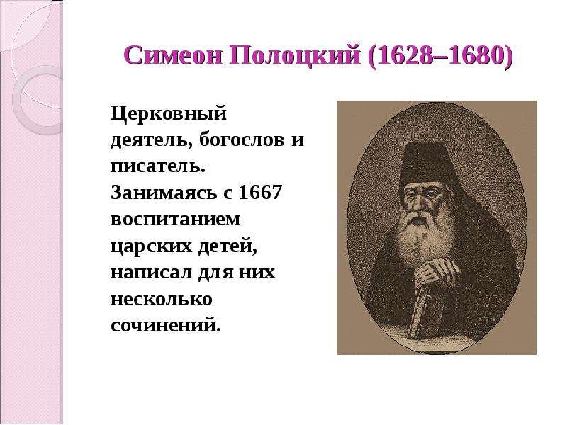 Деятель восточнославянской культуры, духовный писатель, богослов, поэт, драматург, переводчик, монах, московский придворный астролог. (17в)