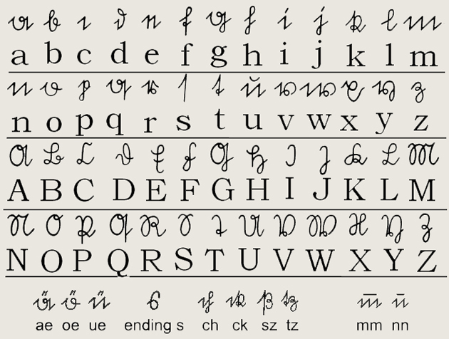 В 1920-30-е годы в использовании стал популярен шрифт Зюттерлина (Sütterlinschrift)