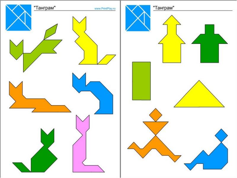 Обладая воображением, пространственным мышлением и усидчивостью, всего из 7 элементов можно собрать тысячи различных фигур. Неподготовленному человеку решение таких задач дается с трудом. Однако уже через пару месяцев регулярных занятий ребенок легко определяет, из каких фигур состоит силуэт на схеме, и понимает, как его лучше собрать.
