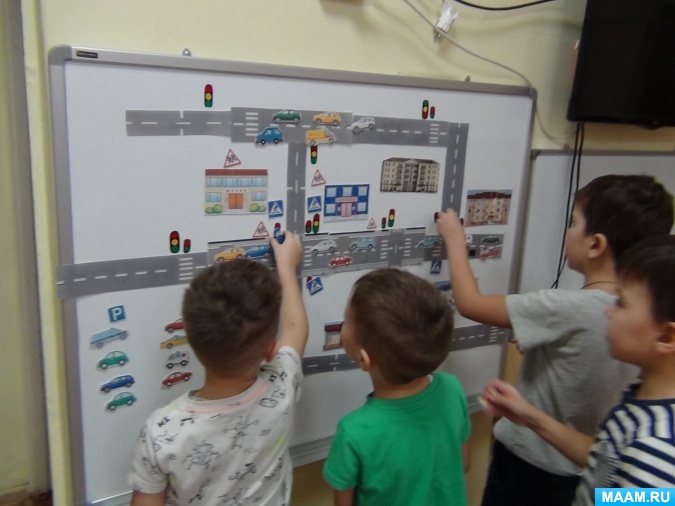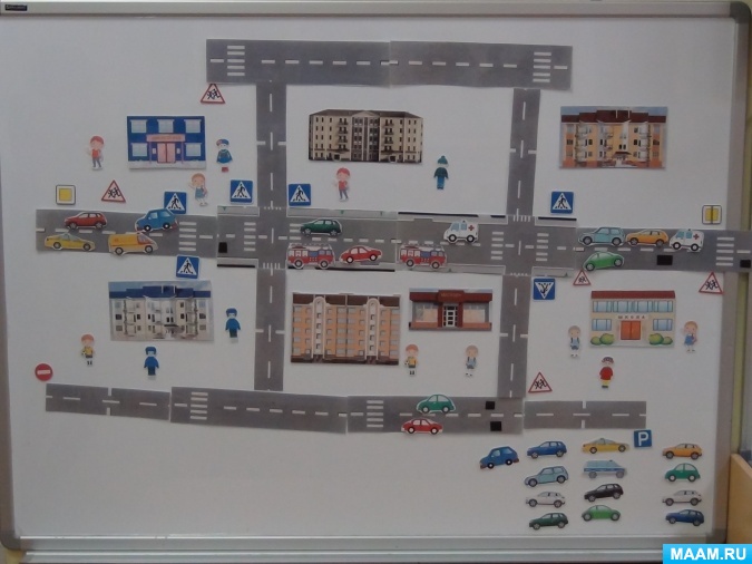 3. Расположить на доске дорожные знаки, элементы дороги в соответствии изображенного объекта.