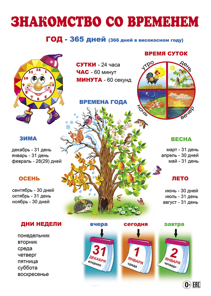 · знания временных эталонов (час, минута, секунда);
