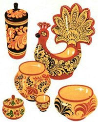 •Порисовать с детьми предметы с элементами росписи: Хохлома, Гжель, Филимоновская, Городецкая, Жостовская. Узор дети рисуют, но могут и напечатать ( листья-отпечатки). Для этого надо вырезать формы из картошки, ластиков, использовать пластмассовые пробки и др. предметы, которые оставляют след. Получается узор для обоев, ткани, каймы, рисунка.