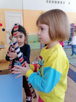ще в нашей группе есть многофункциональный тренажер «Звуковичек». Он сделан для детей как раннего возраста, так и старшего дошкольного. Только предусматриваются задания согласно возрасту, и уровню развития воспитанника. На данном тренажере наши воспитанники любят играть в игру «Смотай ленточку». Сложность данного упражнения в том, что палочка , на которую наматывается ленточка тоненькая, и для неумелых ручек доставляет дискомфорт и неудобство. Когда дети успешно овладевают данной игрой, мы им предлагаем поиграть в соревнование «Кто быстрее смотает ленточку».Сложность в соревновании, в том что ребенок должен смотать аккуратно ленточку первым, ленточка не должна разматываться и падать, тогда ты победишь.