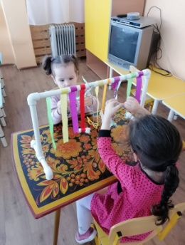 ще на тренажере «Звуковичек» есть свободно висящие разноцветные ленточки, и девочки очень любят плести из них «косички», что так же помогает развивать мелкую моторику моих воспитанников, и в дальнейшем подготавливает девочек к навыкам ухода за собой-девочки учатся заплетать косички.
