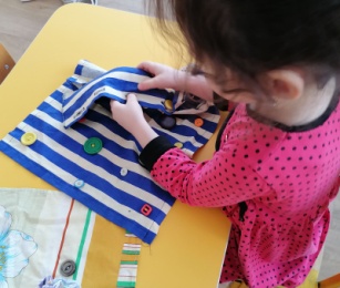 В нашей группе дети любят играть с различными пуговичками, крючочками, застежечками (все пришито, приклеено). Все пуговички р