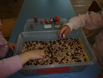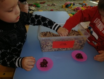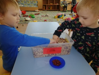 своей работе , опираясь на опыт ученых и других педагогов мы используем «Сухой бассейн». В него мы насыпали различные крупы (горох, белая/красная фасоль, гречка, перловка, чечевица, рис) и все перемешали. В этот сухой бассейн «прячем» мелкие игрушки, и дети их «откапывают». Некоторые дети сами «закапывают», а напарник «откапывает» игрушки. А как усложнения «закапываем» игрушки и называем, какую игрушку надо «откапать», дети «откапываю» до тех пор, пока не попадется нужная игрушка, а ненужная «закапывается». Еще при помощи «Сухого бассейна» дети любят играть в игру «Золушка» - даются самые простые задания - «Выбери только….фасоль», как усложнение называем цвет. Или дети соревнуются «Кто больше наберет… фасоли». Вот так занимаясь развитием мелкой моторики пальцев рук детей, мы положительно влияем на становлении детской речи и на функционирование речевых зон коры головного мозга.