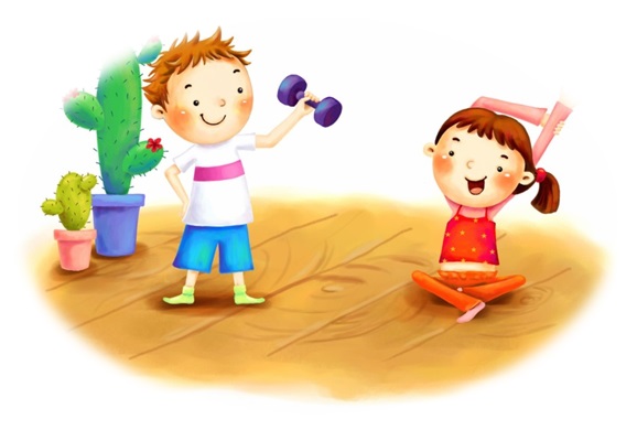 Это создает бодрое настроение, улучшает дыхание, кровообращение, повышает тонус мышечной системы, улучшает обмен веществ и возбуждает аппетит. Зарядка проводится обязательно при открытом окне. Зарядку нужно делать в трусах, майке, босиком. Обычный комплекс утренней зарядки для дошкольников включает ходьбу, дыхательные упражнения, корригирующие осанку (повороты, наклоны, приседания), кратковременные прыжки или бег и снова ходьбу. Ребенок с удовольствием занимается зарядкой, если придать ей вид игры и делать упражнения вместе с ним. Ребенок должен самостоятельно научиться мыть лицо, уши, чистить зубы. Когда ребенок одевается, убирает постель, взрослые должны помогать ему как можно меньше.