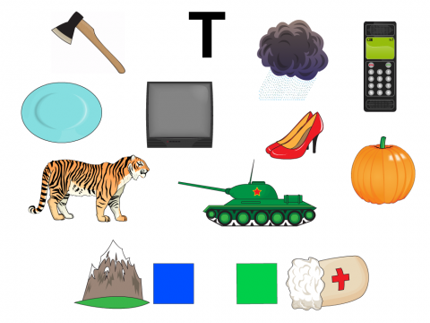 Картинки: топор, тарелка, телефон, тигр, телевизор, тыква, туфли, танк.