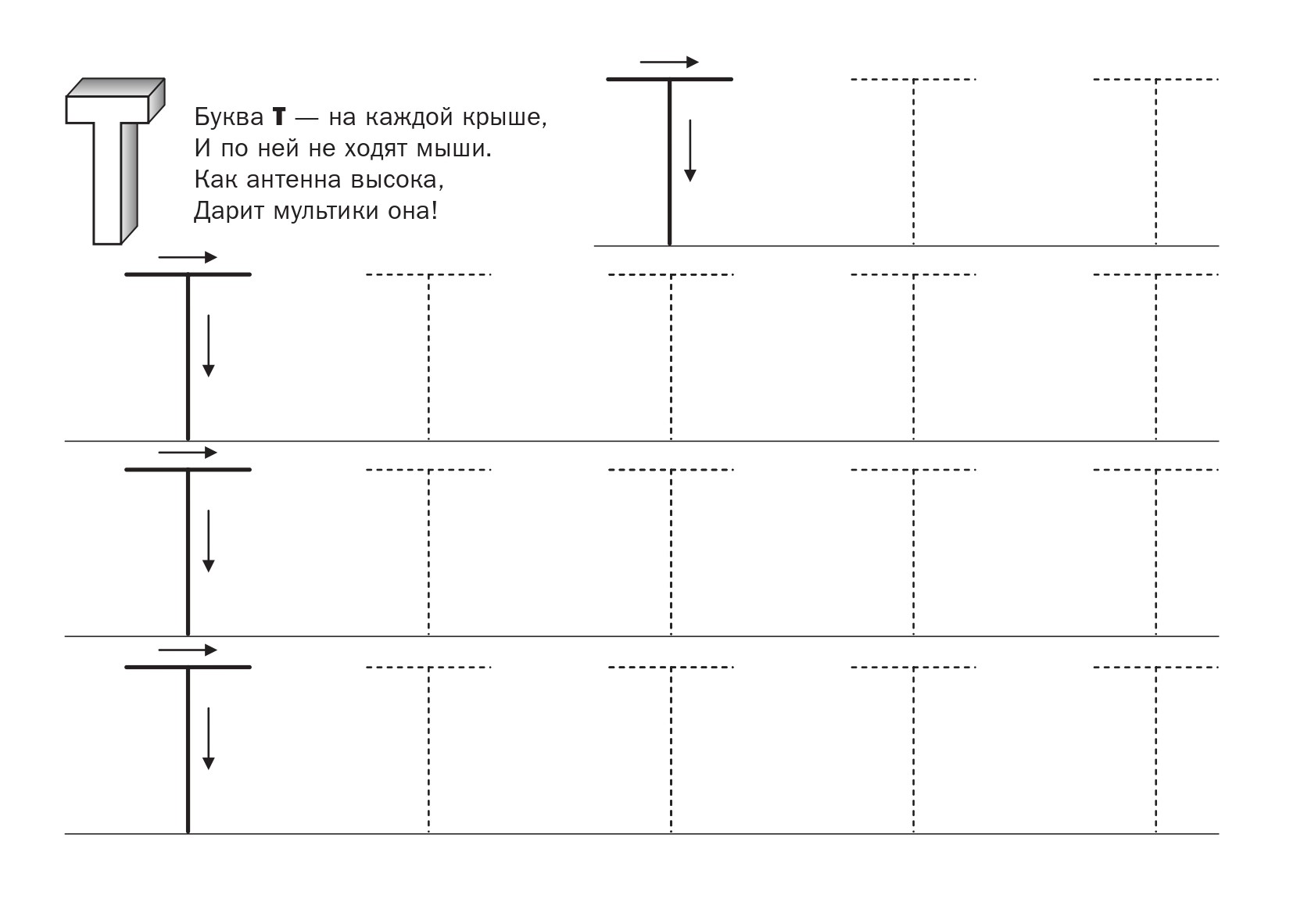 - Из каких элементов состоит буква Т? (Горизонтальной и вертикальной линий). С помощью карандашей сложите букву Т. (Дети на столе – выкладывают букву Т из карандашей, из счетных палочек).