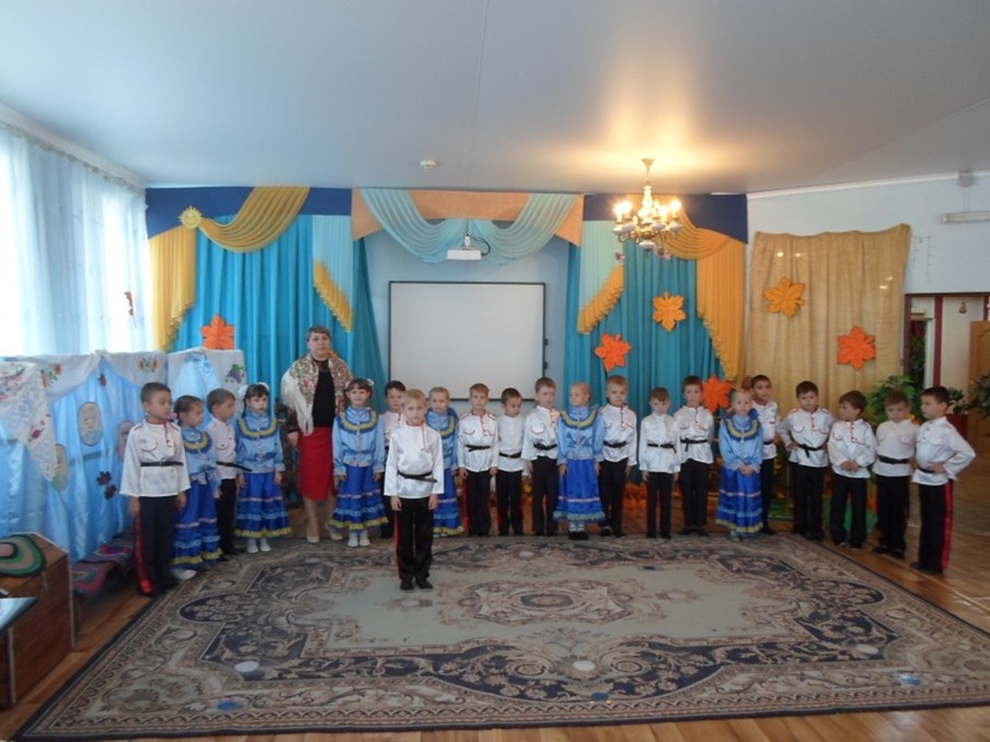 Фольклорная группа старшей. группы. исполняет казачью песню