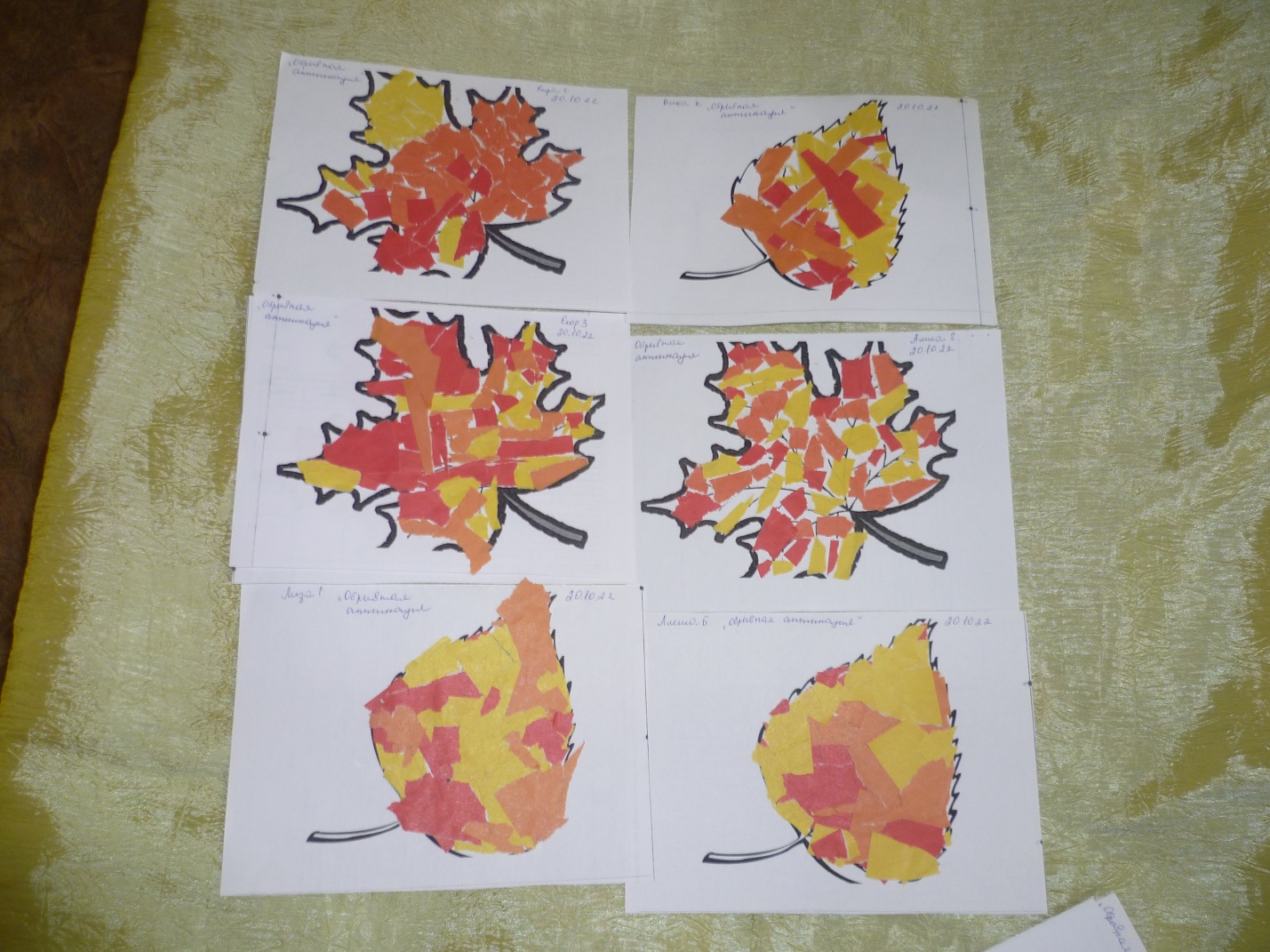 - учить украшать шаблон кленового листика (заготовлен заранее) мелкими яркими обрывками цветной бумаги