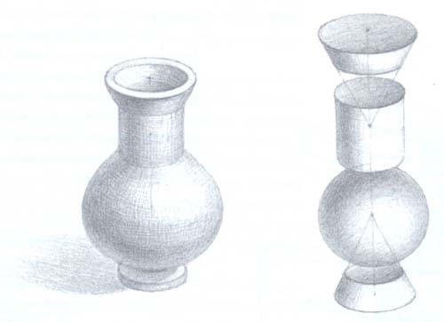 Линейно-конструктивное и тоновое решение рисунка вазы. |