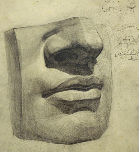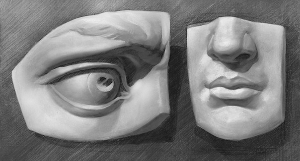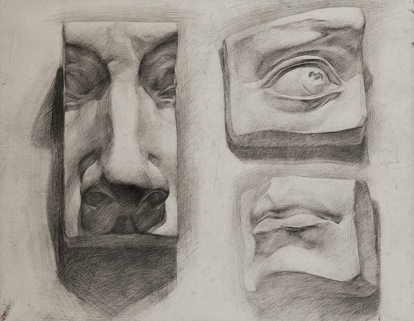 Рисование гипсовых частей лица.