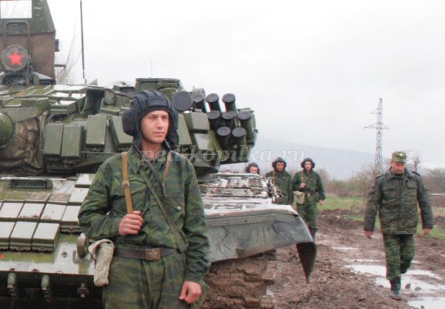 Сухопутные войска – в них служат пехотинцы, артиллеристы, ракетчики, танкисты. Танки – самоходные машины на гусеничном ходу, что позволяет им проходить по любой местности.