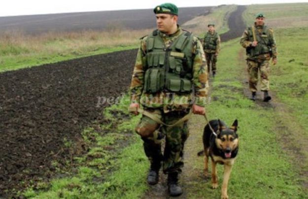 Пограничники – это солдаты, которые охраняют границу. Они первыми встречают вражеские войска, когда переходят границу. В пограничном отряде есть проводник с собакой. Собака помогает пограничникам, идёт по следу.