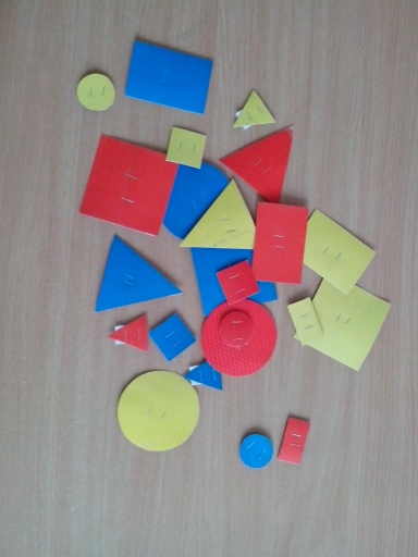 - развитие умений классифицировать и обобщать фигуры по трём свойствам (цвет, форма, величина);