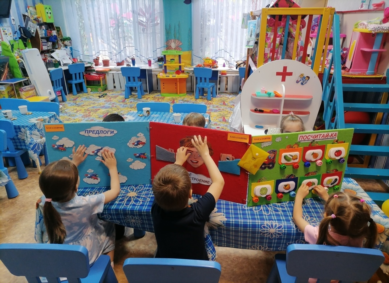Тематический модуль «Бакалаврик» - изготовлено по принципу «раскладушки», что позволяет сократить место его хранения. Модуль многофункциональный, трансформируемый, яркий. Изготовлен из безопасных материалов и включает в себя 6 игр разной направленности.