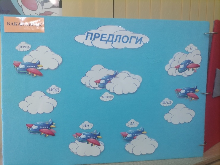 Ребенок подбирает необходимую картинку к предлогу и закрепляет на игровом поле.