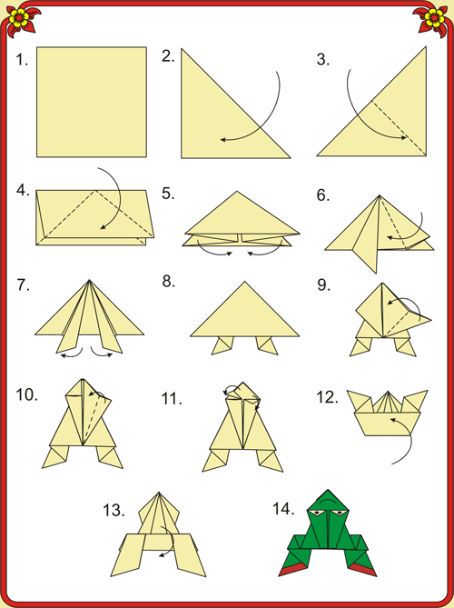 - научить поэтапному складыванию лягушки;