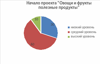 Мониторинг на начало проекта показал, что не все дети едят дома полезную еду. 30% показал низкий уровень ( 6 детей) не едят дома овощи и фрукты ,60% (12 детей) едят овощи и фрукты по настроению. Только 10% ( 2 детей) едят ежедневно дома овощи и фрукты.