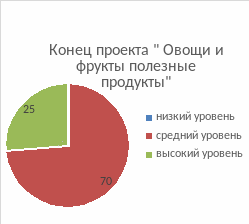 Конец проекта показал, что все дети стала есть дома овощи и фрукты. 0%-низкий уровень,
