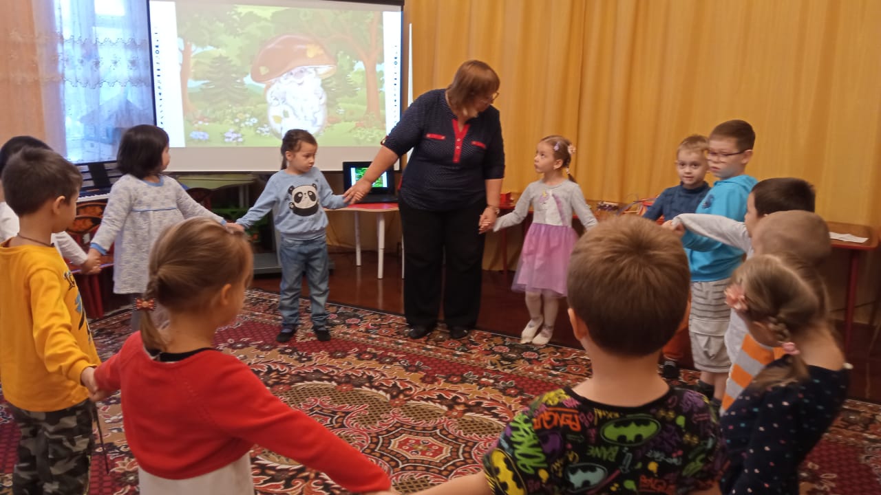Лесовичок: А сейчас пришло время прощаться! Предлагаю встать в круг и взяться за руки.