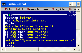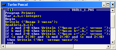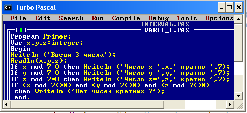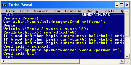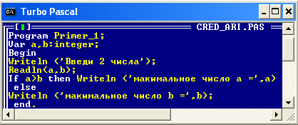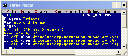 Окно языка программирования TurboPascal