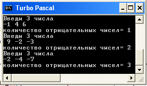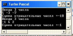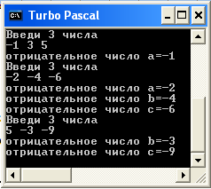 Задача:Из трёх введенных чисел напечатать только отрицательные