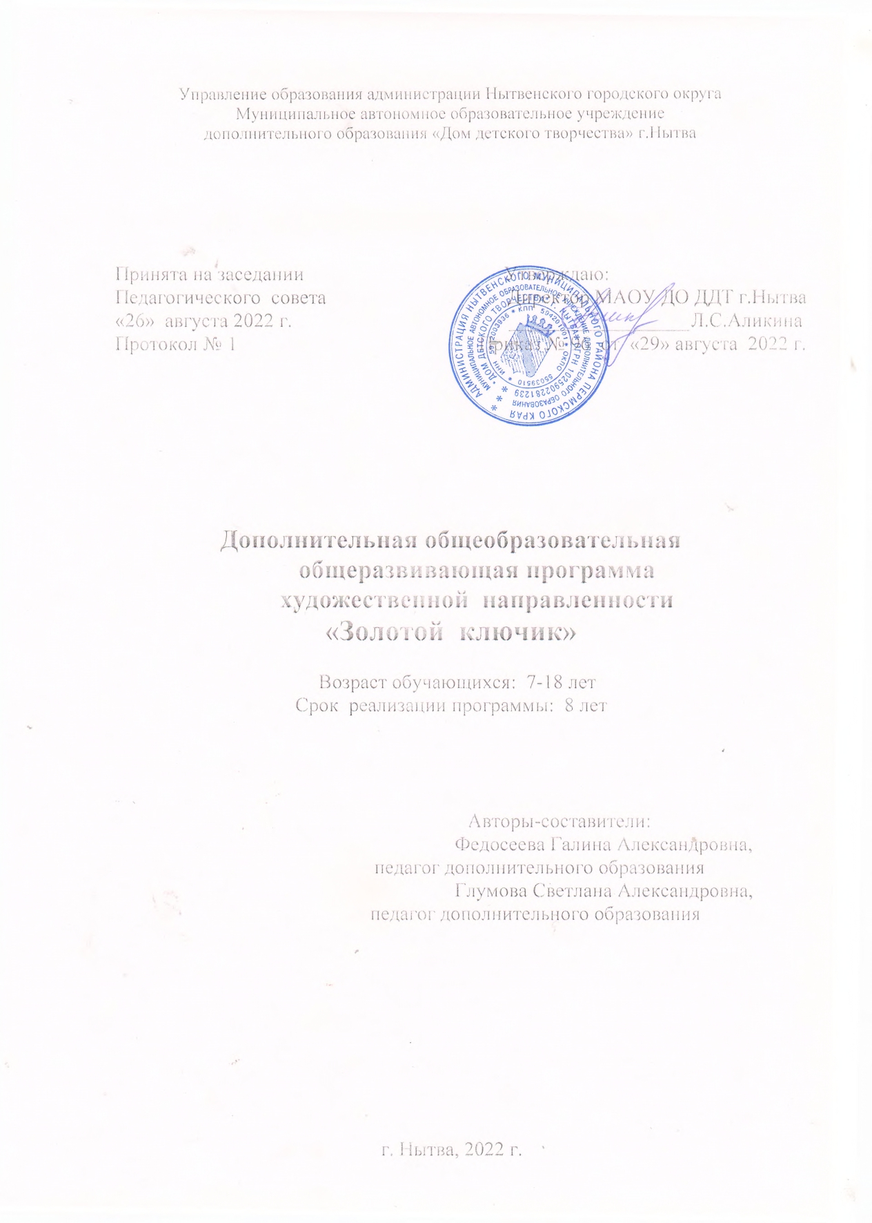 "Дополнительная общеобразовательная общеразвивающая программа художественной направленности"Золотой ключик"