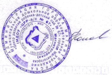 «ЦЕНТР РАЗВИТИЯ РЕБЁНКА - ДЕТСКИЙ САД №67»ГОРОДА МАГНИТОГОРСКА