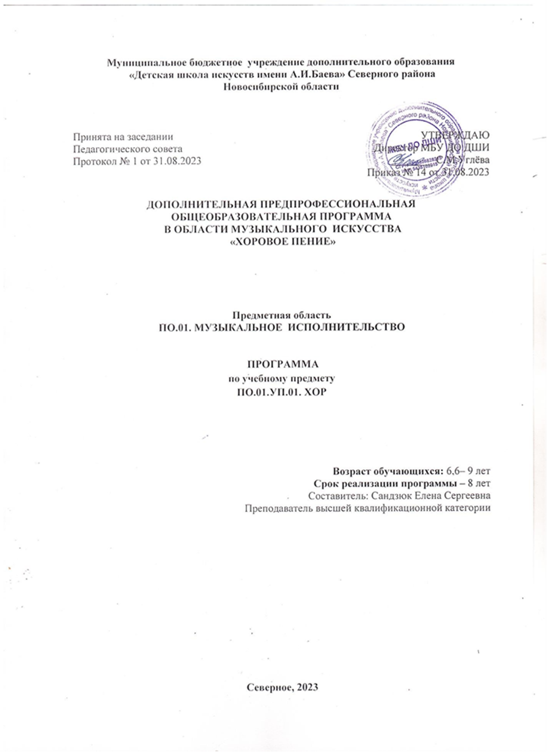 Настоящаяобщеобразовательнаяпрограммавобластимузыкальногоискусства «Хоровое пение» (далее — программа «Хор») определяет содержаниеиорганизациюобразовательногопроцессавМБУ ДОДШИСеверного района.