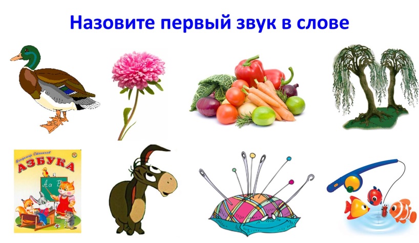 Картинки: утка, астра, овощи, ива, азбука, ослик, иглы, удочка.