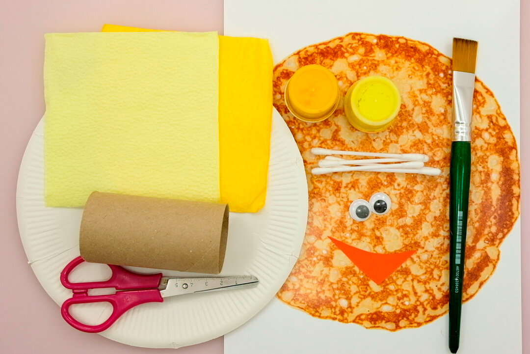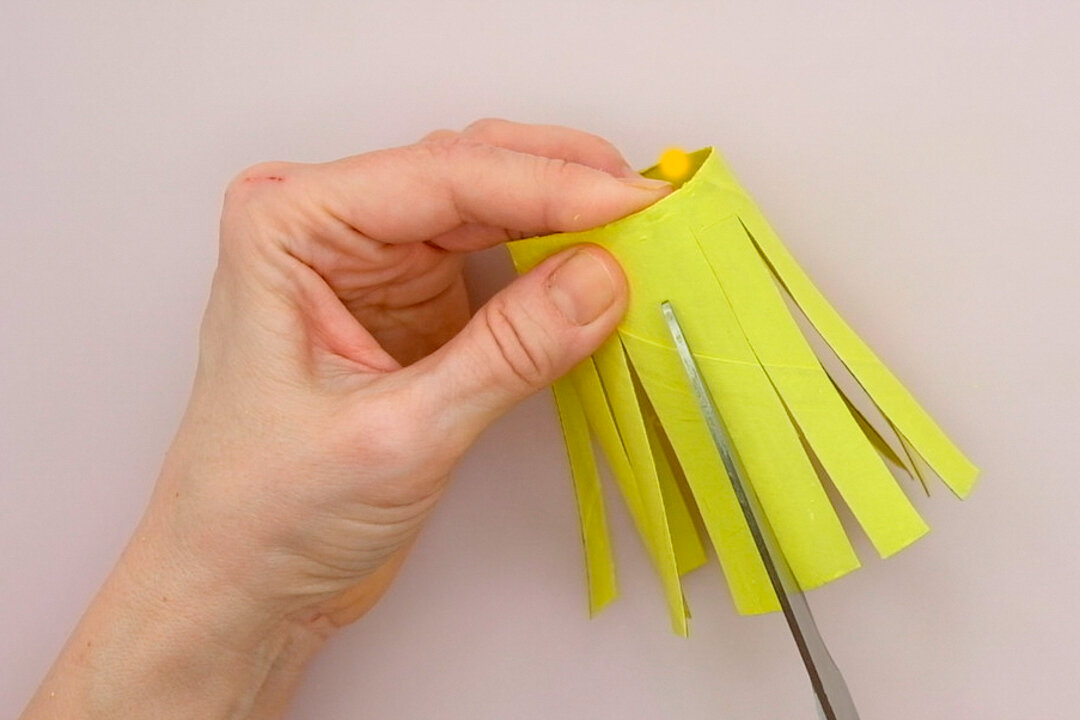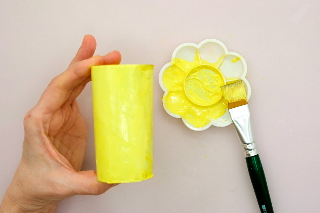 Втулку от туалетной бумаги красим в жёлтый цвет изнутри и снаружи.