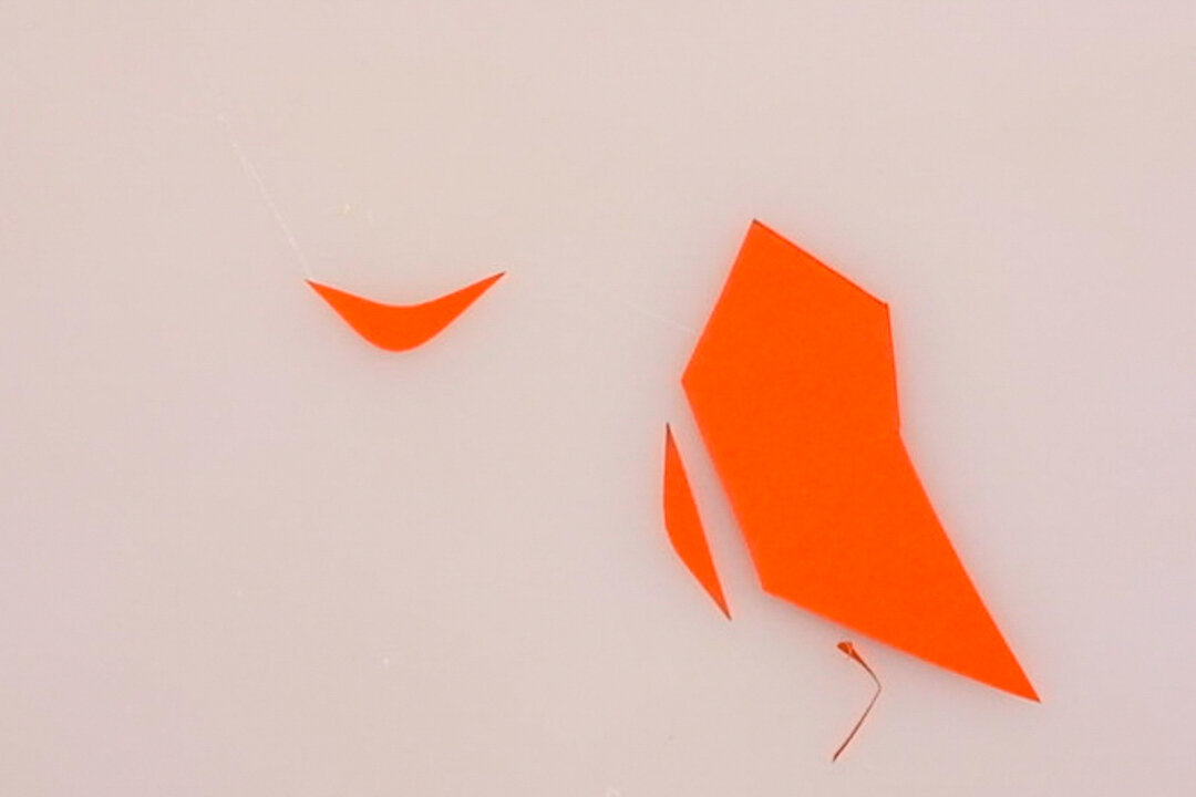 Из цветной бумаги красного цвета вырезаем "ротик"