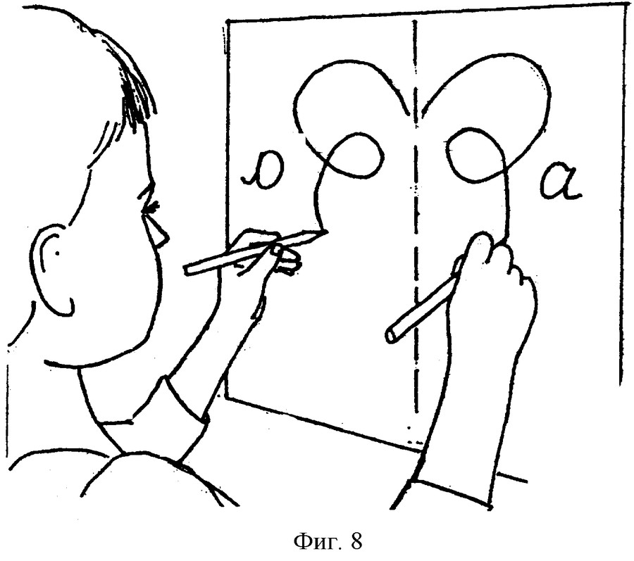 ытянуть перед собой правую руку на уровне глаз, пальцы сжать в кулак, оставив средний и указательный пальцы вытянутыми. Нарисовать в воздухе горизонтальную восьмерку – НАЧАЛО ВСЕГДА ВЛЕВО ВВЕРХ - как можно большего размера. Рисовать начинать с центра и следить глазами за кончиками пальцев, не поворачивая головы. Затем подключить язык, т.е. одновременно с глазами следить за движением пальцев, хорошо выдвинутым изо рта языком.