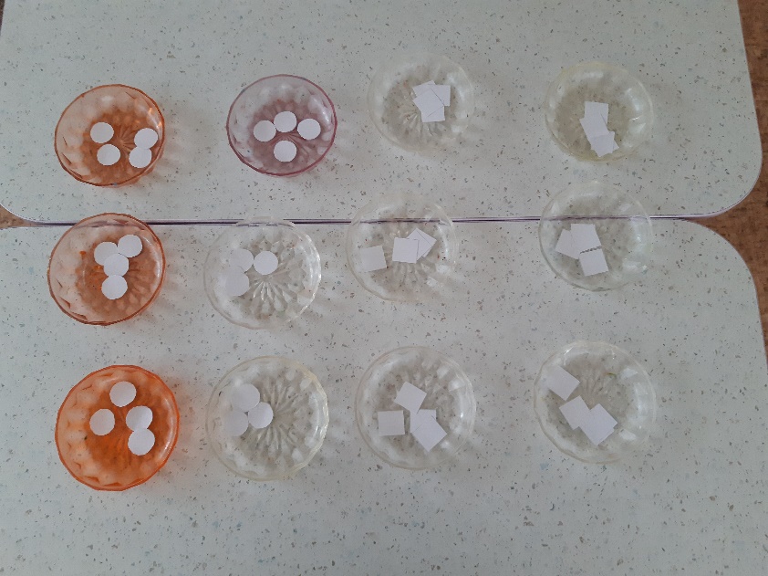 -Дети: Кругами, квадратами из цветной бумаги.