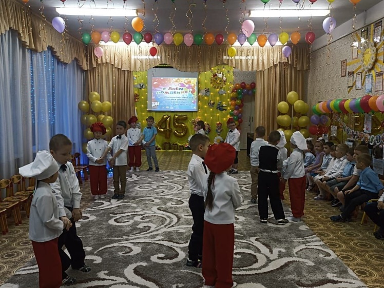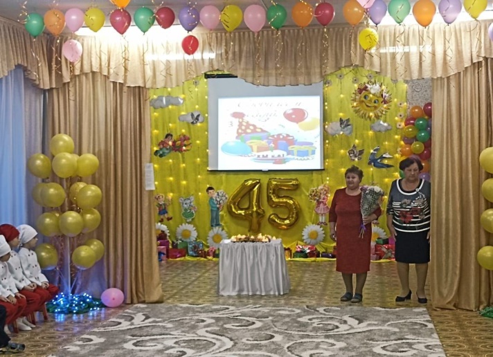 Заведующий: Сегодня особенный день радости и праздника, наш Детский сад отмечает свой 45 юбилей! Спасибо всем работникам, старающимся воспитывать наших детишек с любовью и ответственностью. Спасибо всем за верность и преданность своей профессии. Хочу выразить слова признательности нашим ветеранам, которые в этих стенах оставил частичку своего сердца и своей души. Мы благодарим вас за ваш труд и хотим с ребятами подарить вам наши сердца! Всем мира, добра и крепкого здоровья!