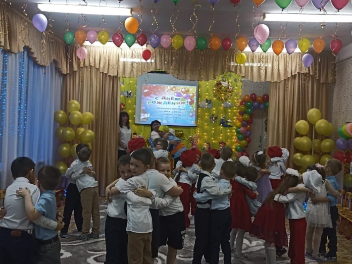 Цель: создание праздничной, дружественной атмосферы в детском коллективе. Привлечение внимания детей к истории детского сада.