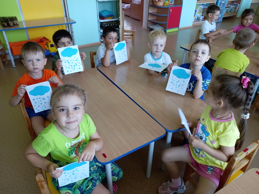 Смешанная техника (аппликация + рисование) «Дождик».