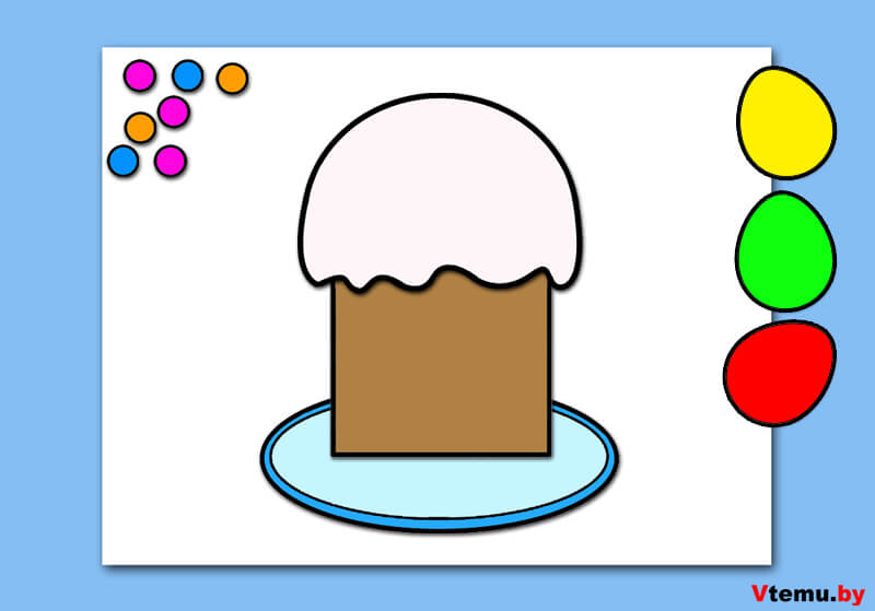 Воспитатель: Молодцы, ребята! вот какие замечательные куличи у нас получились, но вот только на них нет праздничной, разноцветной посыпки. Давайте это исправим вместе!