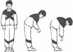 «Ушки». Стоя, руки в том же положении, что и в предыдущем упражнении. Наклоняем голову (ухом к плечу), делая вдох, к другому плечу тоже самое. Не забывайте выдыхать.