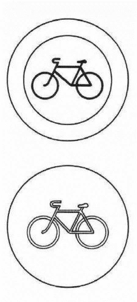 Данный раздел находится на левом развороте наверху и представляет раскраски с изображением знаков ПДД.