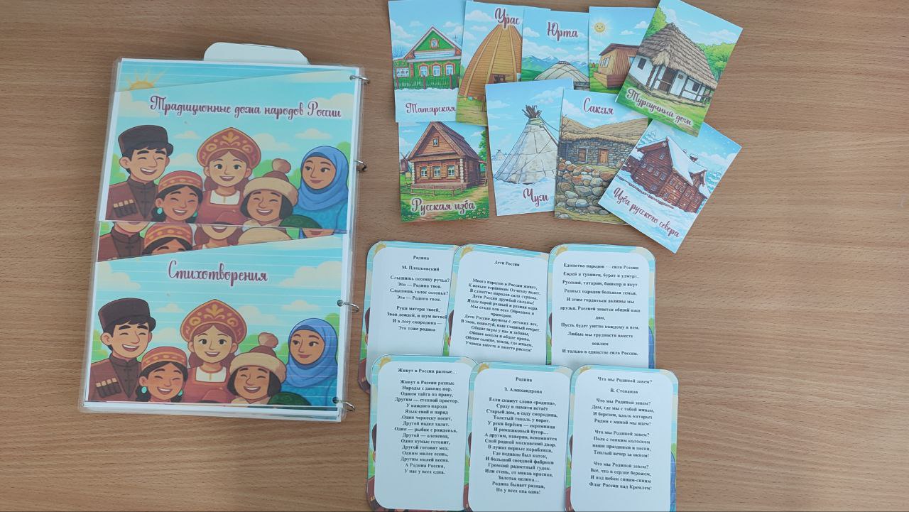 Он состоит из множества страниц, на которых представлены различные темы, связанные с культурой и историей народов России. Каждая страница содержит определённую информацию о единстве народов, его традициях, о символике России, подвигах России. В лепбуке есть задания и игры, которые помогают детям лучше понять и запомнить информацию. На одной из страниц можно найти задание на составление пазла с изображением национальных костюмов народов России, игру «Найди тень», где нужно угадать изображение людей в национальных костюмах, загадки народов России для знакомства детей с культурой разных национальностей, игра-мемори «Блюда народов» поможет детям лучше узнать о народах России, их традициях и национальных блюдах в увлекательной форме, карточки - «Народы России» знакомит детей с разнообразными народами, проживающими на территории России. С помощью лепбука дошкольники научаться узнавать и называть национальности людей по их национальным видам одежды. В комплекте карточки 18 народов, 36 костюмов (женские и мужские) с описанием на обороте. А также в комплект входят: патриотические стихотворения о Родине, подборка красивых стихотворений расскажет детям, о том, как нужно любить и беречь свою землю, свою культуру, свою природу. И, гордиться тем, что мы живем в России. У разных народов России есть уникальные дома, созданные с учетом климата, природы и образа жизни. В картотеке «Традиционные дома народов России» вы увидите, как они выглядели.