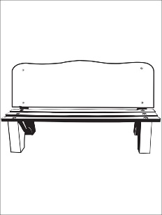 Под лавкой посадите два цветочка, между деревом и лавкой один гриб, в верхнем правом углу солнышко, слева над деревом изобразите две бабочки.