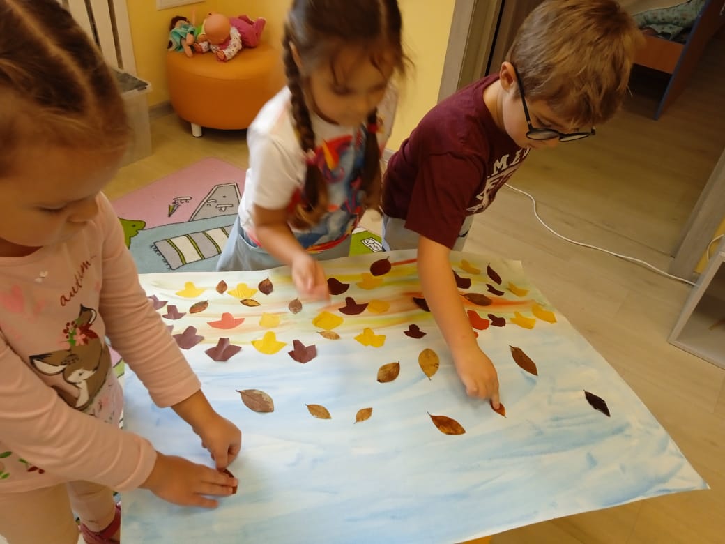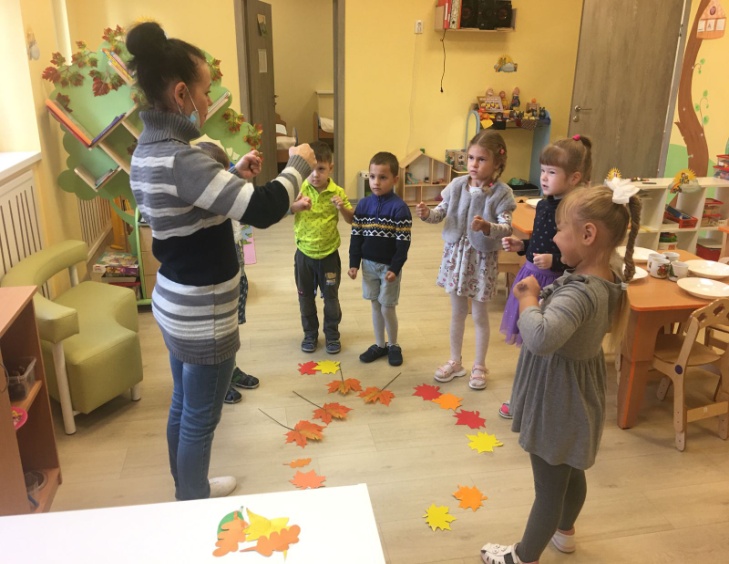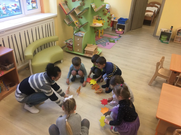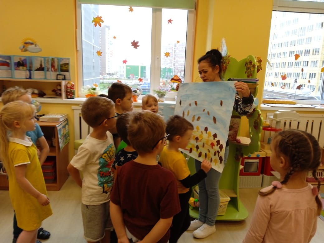 На прогулках обращали внимание не только на особенности внешнего вида растений, но и на способ существования всех растений - прикреплённость их к земле. Детям интересно было узнать, что такое «золотая осень»- это осень «с разноцветным листопадом, шуршанием опавших листьев под ногами, осенним солнышком и прохладной погодой, тихим плачем мелкого дождя и тучами на небосводе».