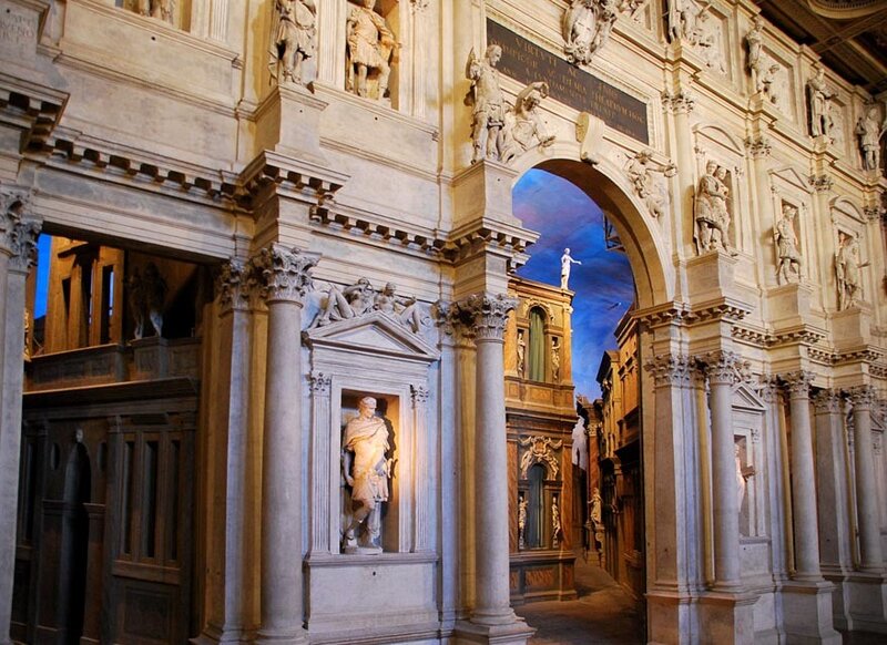 Самая обширная и известная часть наследия Палаццо - сельские дома венецианской знати, спроектированные архитектором по закону симметрии. В Венеции был построен ряд церквей, в том числе Сан-Пьетро ин Кастелло, в 1558 году, фасад церкви Сан-Франческо делла Винья в 1562 году, Санта-Мария делла Презентационе и другие прекрасные шедевры архитектуры. И если виллы его рук несут на себе печать покоя и стабильности, то церкви наоборот, патетичны и навевают мысли о динамике и прогрессе. Поздние постройки Палладио близки по духу стилевым решениям барокко. К примеру, Лоджия дель Капитаньо, построенная в 1571 году напоминает классическую античную триумфальную арку, а полуколонны, соединяющие два этажа дополняют торжественный облик всего здания. Шедевр его мастерства - театр Олимпико в Виченце. Здесь архитектор переосмыслил проект античного театрального сооружения. Амфитеатр небольшого размера, рассчитанный на 1000 человек с каменными ступенями, выполняющими роль и скамей одновременно, обнесенный сверху кол оннами, увенчанными статуями.
