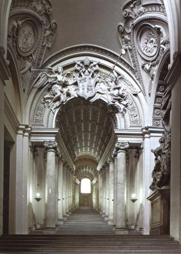 ранческо Борромини (1599–1667) — итальянский архитектор. Учился в Милане, работал в основном в Риме. Он заменял прямые линии и плоскости изогнутыми, скругленными, извивающимися. Свободно используя классический ордер, Борромини изобретал все новые декоративные детали, с безудержной фантазией усложнял планы своих построек. На чередование вогнутых и выпуклых линий, расположенных в форме ромба, построил он церковь Сан-Карло у четырех фонтанов, дворец Фальконьери, закончил палаццо Барберини в Риме.