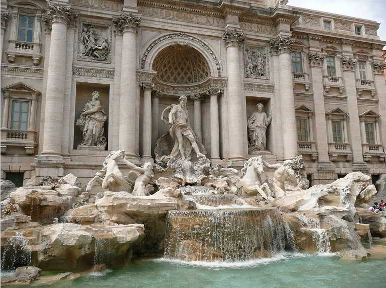 Архитектура – В Риме завершается строительство ряда раннехристианских базилик (Санта-Мария Маджоре и др.), к ним пристраиваются пышные барочные фасады. Сложностью композиции и эффектностью динамичных форм выделяется фонтан Треви, созданный в это время Никколо Сальви. Этот великолепный фонтан с барельефами и статуями на скалистых выступах стоит перед фасадом Большого дворца. Во второй трети 18 века в итальянскую архитектуру постепенно проникает классицизм.