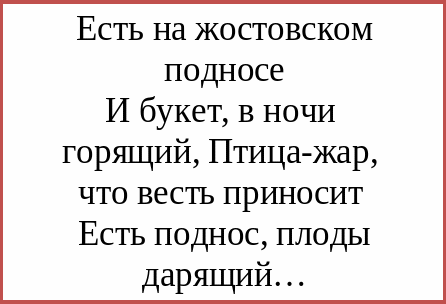 Недалеко от Москвы в очень живописном месте находится село Жостово. Эго село прославилось не только в нашей стране, но и за рубежом. А знаменито оно тем, что никто лучше местных умельцев не может рисовать цветы на железных подносах.