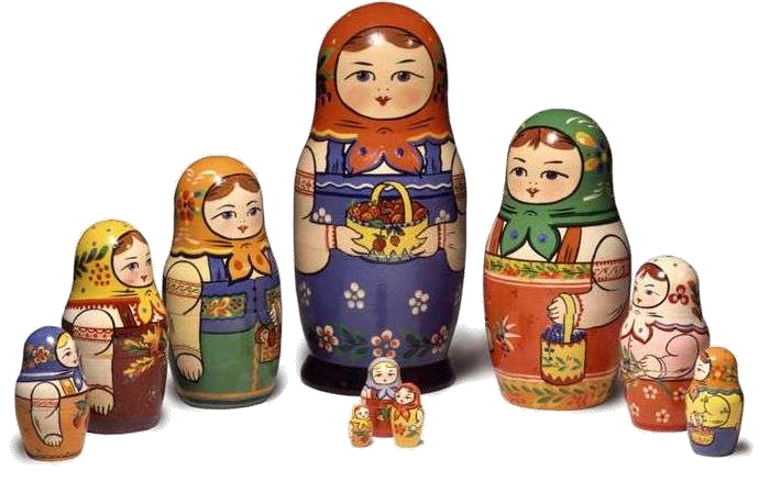 Русская деревянная кукла - матрёшка родилась в конце XIX века в Сергиевом-Посаде. Поэтому и говорят, что Родиной русской матрёшки является Сергиев-Посад. Первая матрёшка изображала девочку в сарафане с петухом в руках. Матрёшка сразу понравилась и взрослым, и детям. Всем нравилось её доброе и ясное лицо. Интересно было то, что в большой кукле пряталось дружное семейство сестричек, мал - мала меньше. Она разнимается на две части, а в ней оказывается еще одна фигурка, и так до 10-12 куколок.